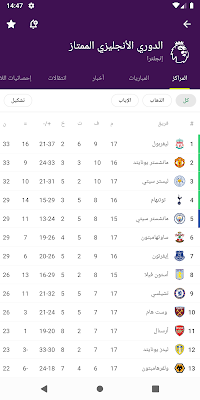 - ترتيب الدوريات: يقدم التطبيق للمستخدمين ترتيب الدوريات والبطولات الكبرى، في الوقت الفعلي.